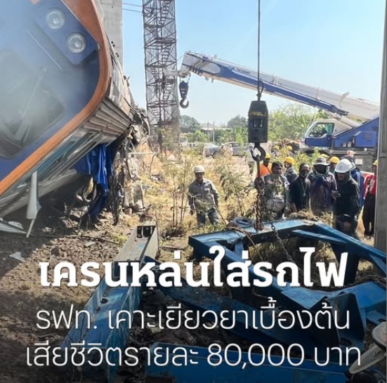 รฟท. เคาะจ่ายเยียวยาเบื้องต้น ผู้เสียชีวิตเหตุเครนถล่มใส่รถไฟ