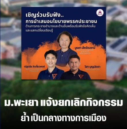 ม.พะเยา แจ้งยกเลิกแถลงนโยบายพรรคประชาชน ย้ำ ต้องเป็นกลางทางการเมือง