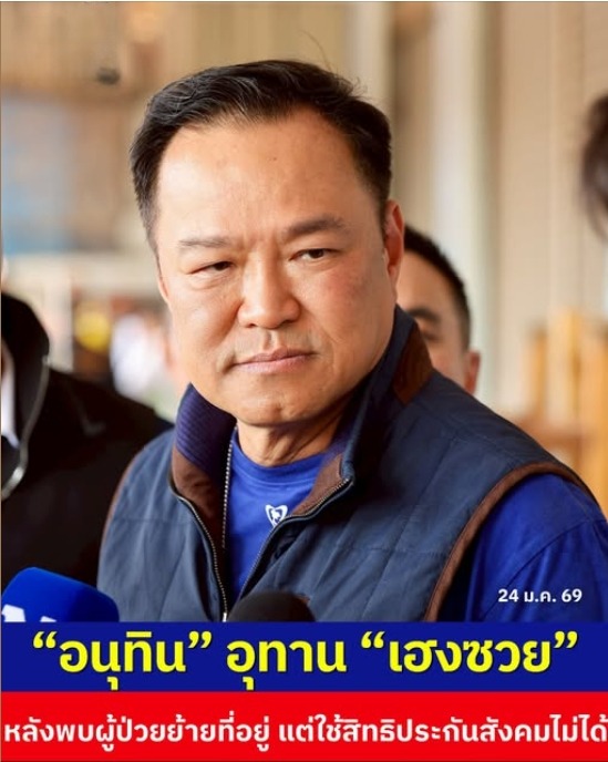 “อนุทิน” อุทาน “เฮงซวย” หลังพบผู้ป่วยย้ายที่อยู่ แต่ใช้สิทธิประกันสังคมไม่ได้